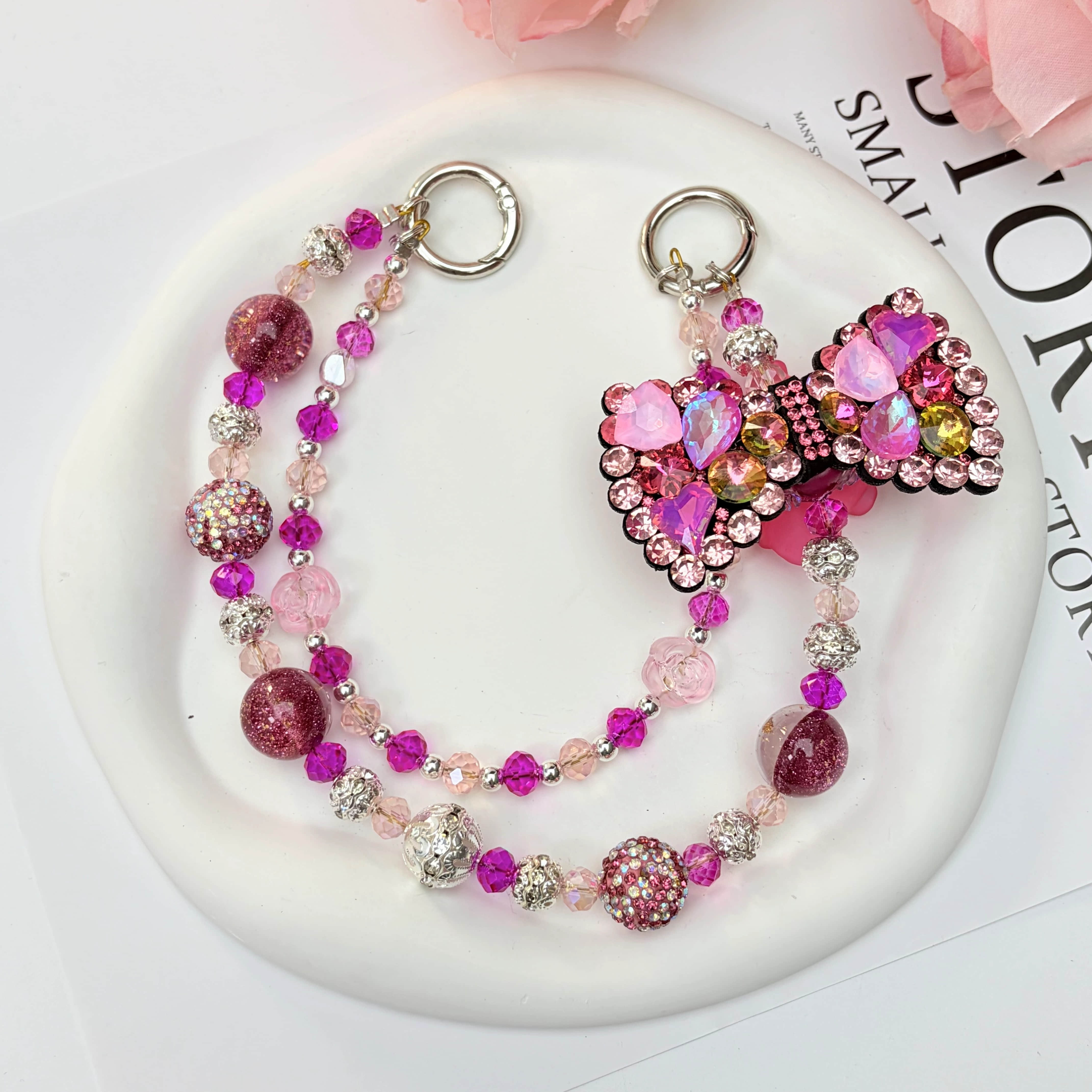 Full-diamond keychain, car pendant, bag tag, heart bow claw keychain, bag chain, phone charm. Unique design, personalized accessories, hot-selling styles jewelry for women,Summervibes
